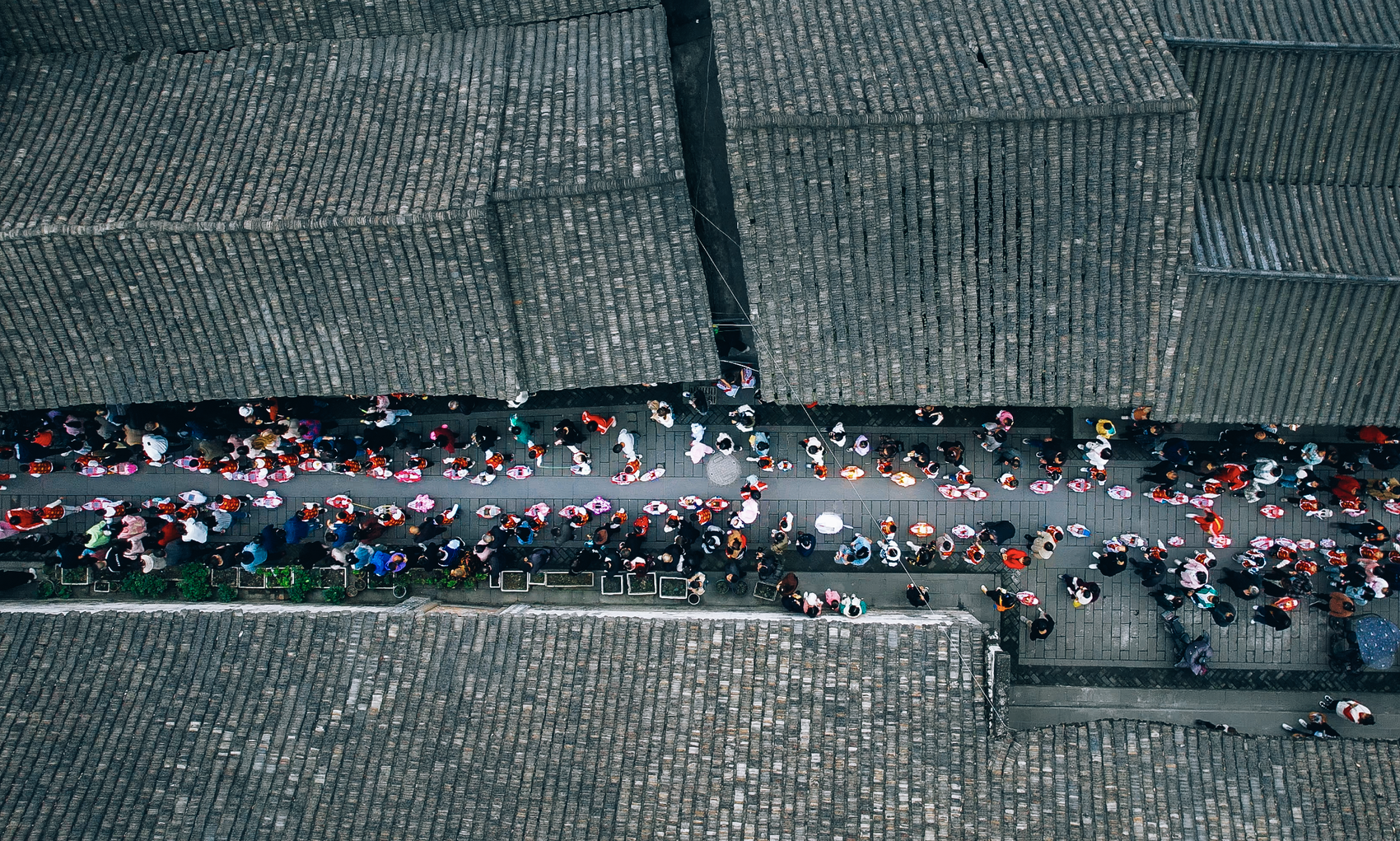 “金牛闹春祈福”仪式后,由269人手举269截龙身汇聚成的“汇江老龙”,在古街上巡游,紧随其后的,还有各表演方队。他们一路前行、一路表演,锣鼓声回荡在古镇上空。