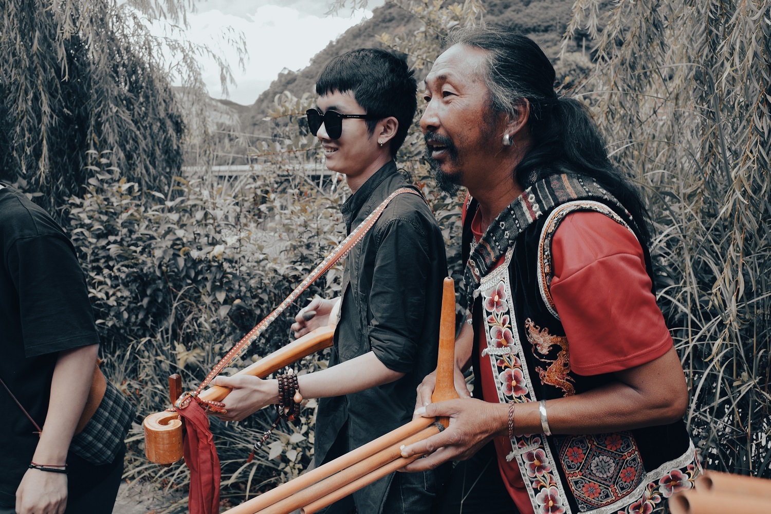在云南采风时,有一天,大家原本计划前往巍山县,采集一些民歌和吹管类器乐,没想到半路遇见两位彝族阿嬷,得知她们村里有“打跳”活动,于是改变当天的行程。在那里,一位大叔特意给他们吹奏芦笙,一位阿嬷演唱当地民歌,他们还领略了极具当地特色的“打竹刀舞”。