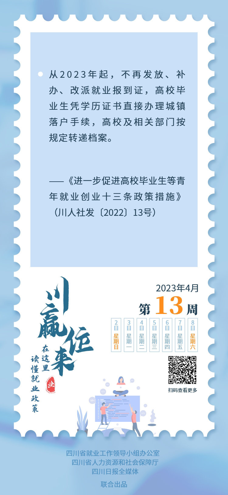 2022年6月,经四川省人民政府同意,四川省就业工作领导小组办公室、四川省人力资源和社会保障厅印发的《进一步促进高校毕业生等青年就业创业十三条政策措施》(以下简称“十三条”),对简化求职就业手续,做了专门规定: