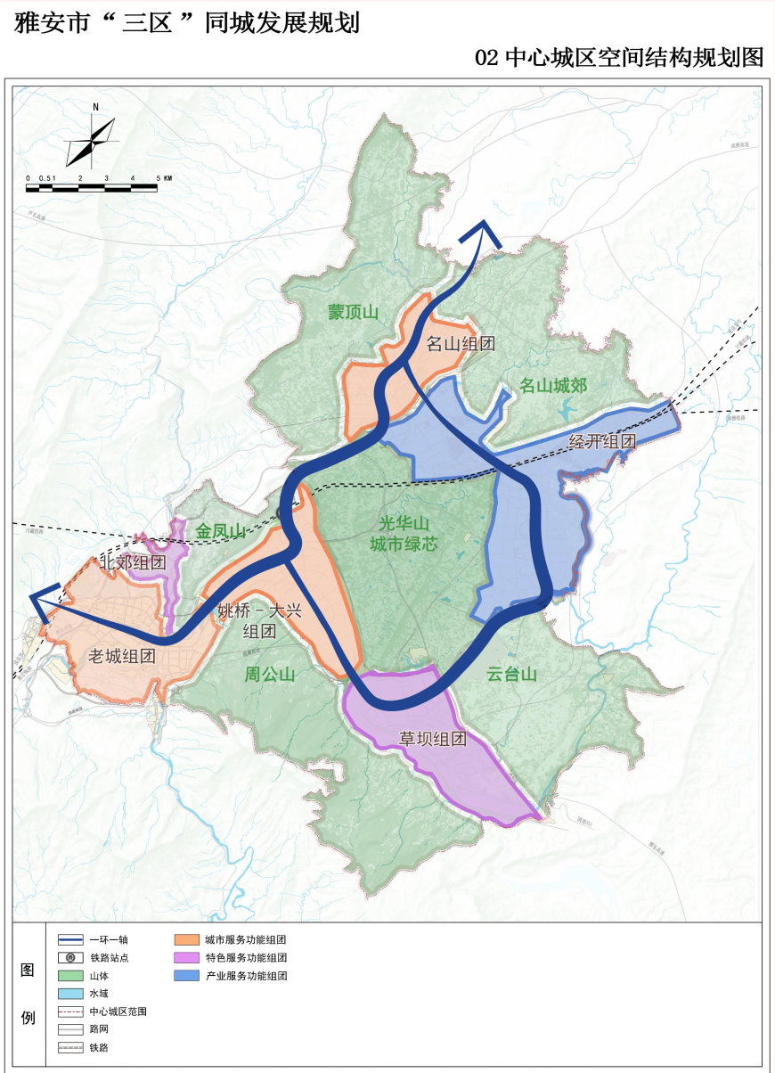 《雅安市“三区”同城化发展规划》中心城区空间结构规划图