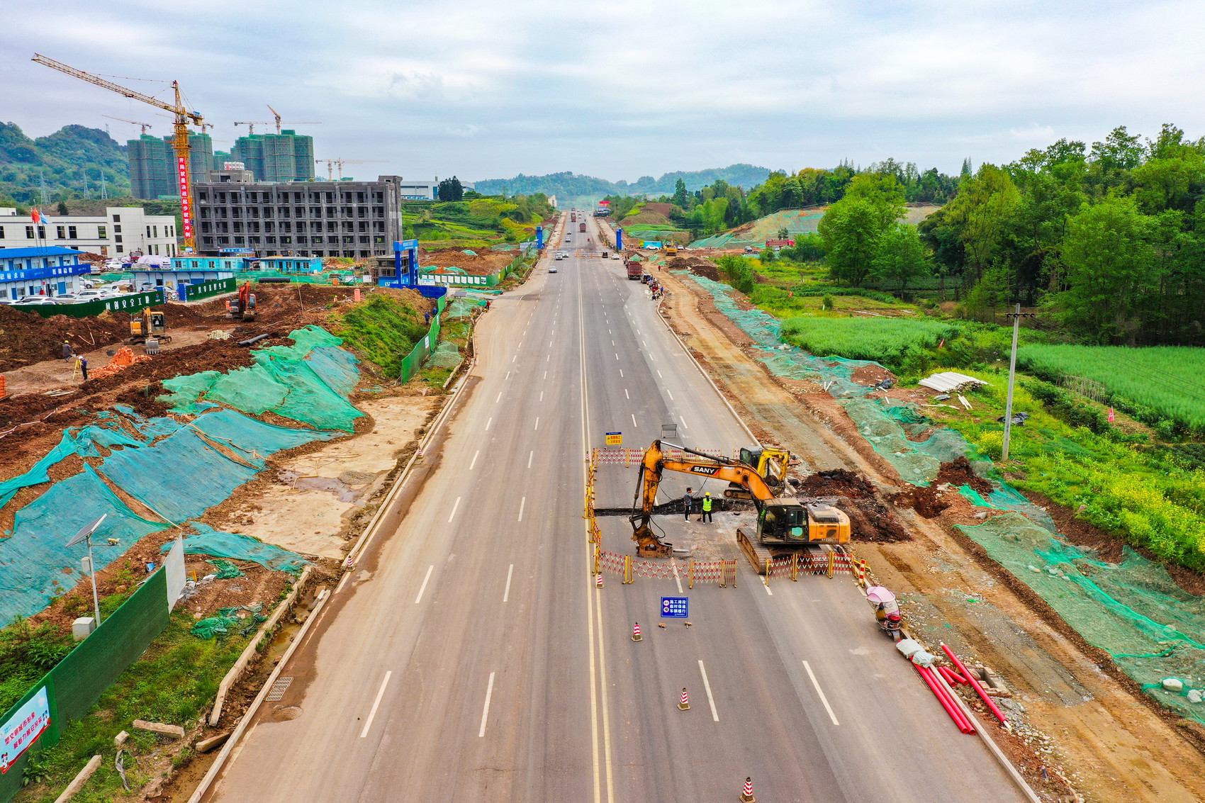 4月初,“一环”道路名山段改造项目建设现场施工繁忙,挖掘机和推土机来回忙碌,迎春路段正进行节点性工程和中段路基施工,同贯路至雅职院段正在推进土石方开挖、填筑施工等。