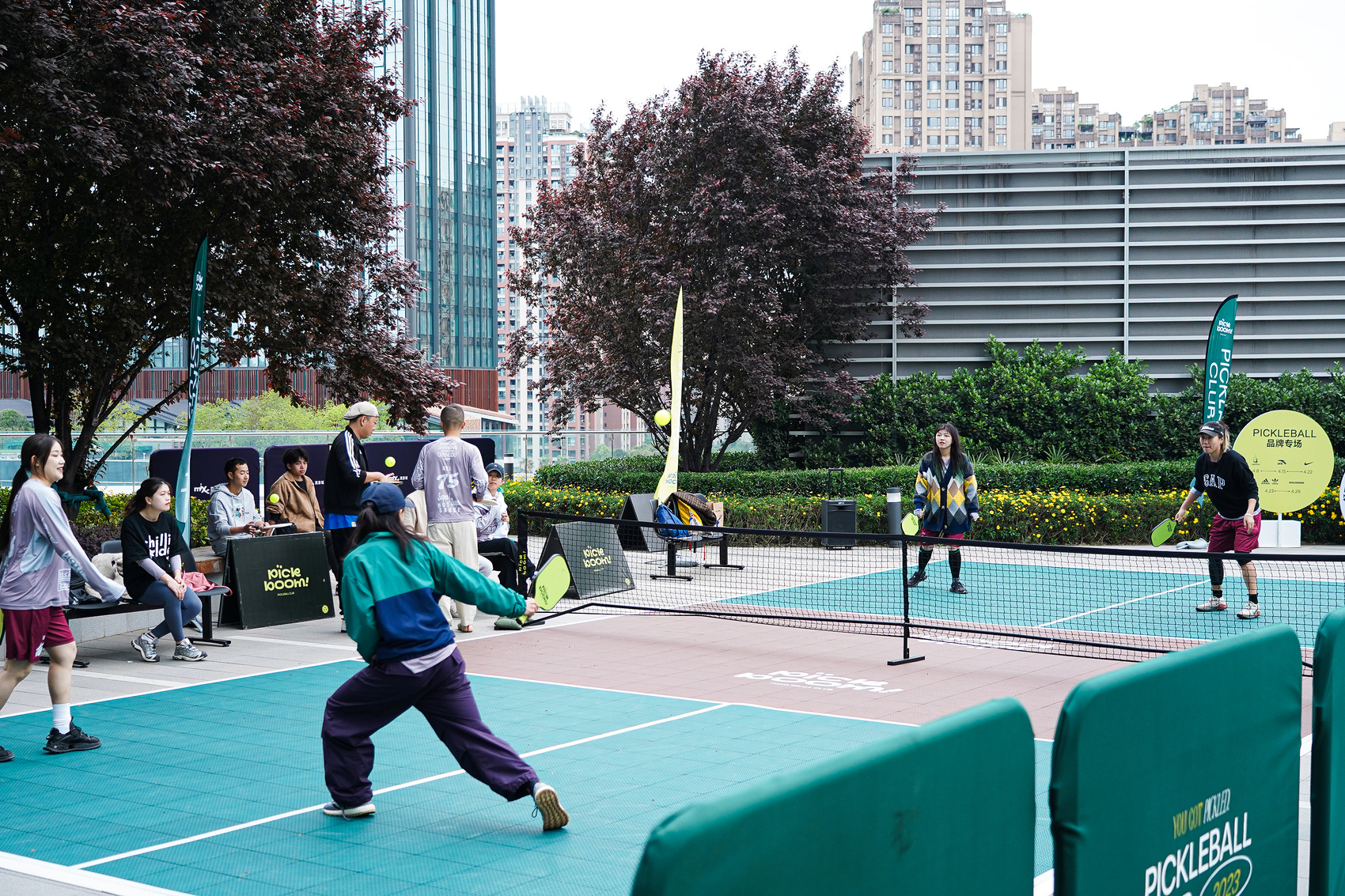 4月,成都万象城在D馆6楼天台呈现匹克球“天空球场”