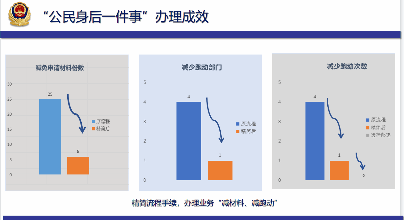 “过去要办理这些业务,群众要跑人社部门、医保部门、公积金中心等多个部门,提交多套材料,现在只要跑一次。”雅安市雨城区政交服务和大数据中心主任周玲说,雨城区已将“身后一件事一次办”申报材料由25份减少至6份,同比精简76%,跑动部门由4个减至公安窗口一次办结,若选择邮寄服务,可实现一次都不跑。