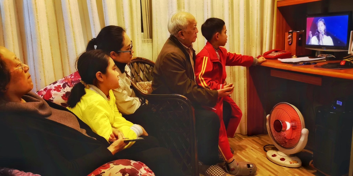 梁乔(梁上泉孙儿)一家在达州观看直播