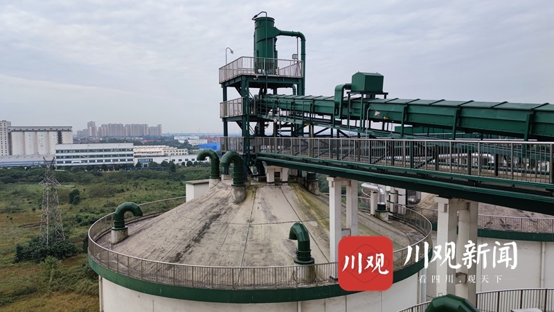 成都中储粮储备有限公司浅圆仓顶部,多条输送管道承担着粮食输送等功能