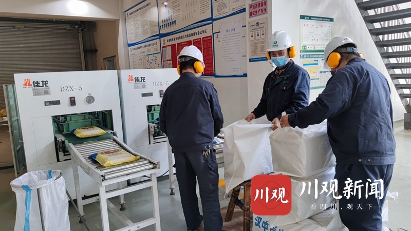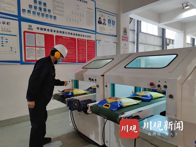 中储粮金堂直属库日产100吨精米生产线尾端,精米被输送到此处进行人工套袋封装