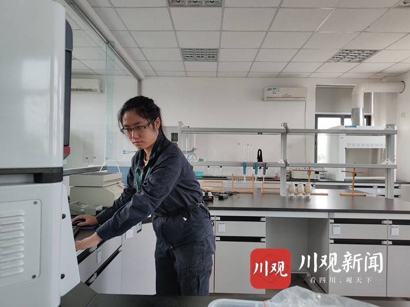 成都中储粮储备有限公司化验室,所有入库和出库的粮食都会在这里进行扦样和化验,除此之外,还会对已入库的粮食进行各种抽检。工作人员徐莹正在进行粮食样本检测。