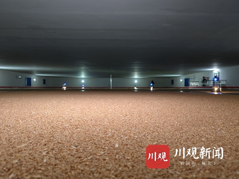 成都中储粮储备有限公司粮仓内部,堆放着5243吨二级小麦,该仓应用了空调控温、科技储粮技术,仓内粮温被控制在18度左右