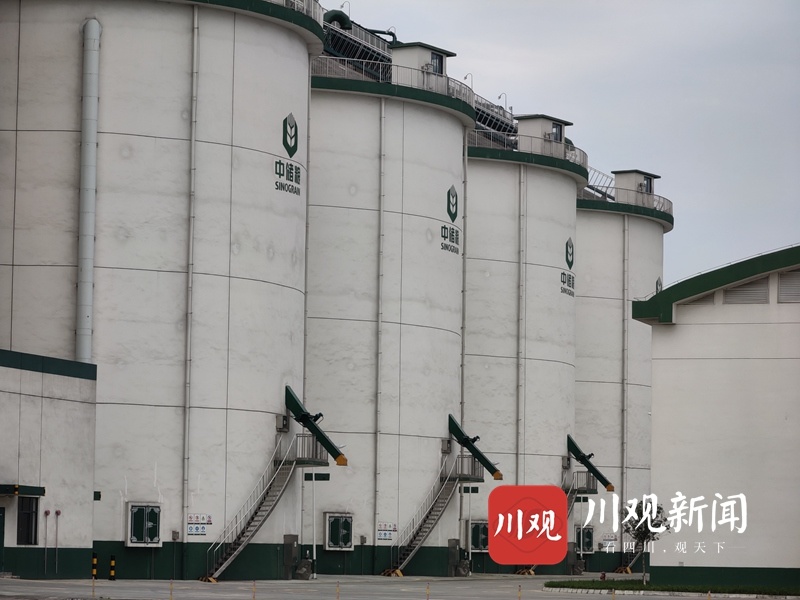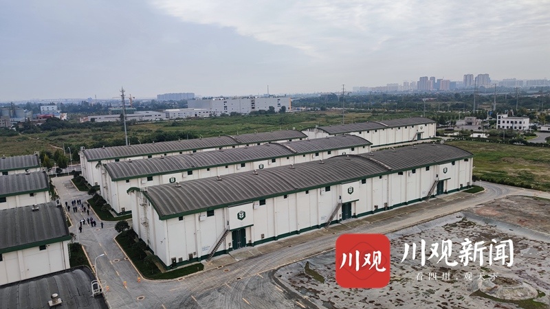 成都中储粮储备有限公司粮库,相对低矮的是高大平方仓,一种较为传统的储粮仓库