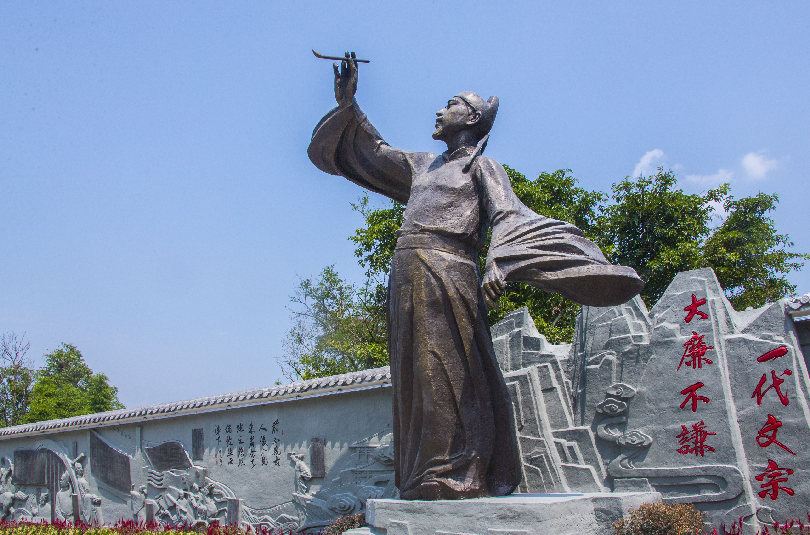 陈子昂诗廉文化基地的陈子昂雕塑。