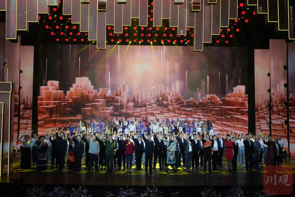 情景剧中,一群绣娘正在忙碌的绣着一副新时代的美丽天府四川画卷。情景剧外,四川6名下足“绣花功夫”的代表绵绵用力,在现场访谈环节生动讲述着教育、医疗、基建、产业方面的重点举措与成绩。