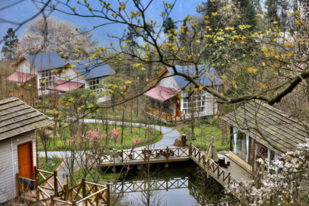 如今,周春蓉和合伙人投资2000多万元打造的民宿,占地500亩,拥有22间观景房、9座独栋小木屋,四周围绕400亩樱花,加之100亩娱乐拓展区域,可以满足团建、儿童游乐等多重需求。