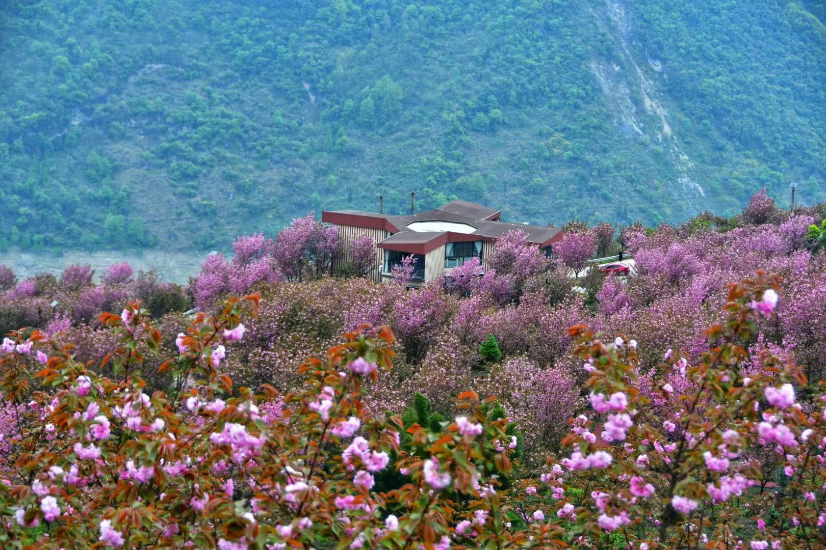 樱花开灿云如霞,芳菲落满地成诗。4月8日,汶川第四届樱花节在赵公村拉开序幕,踏青、登高、逛集市、走秀场、绘纸伞,超过3000名游客齐聚这里,共赴一场樱花的邀约。