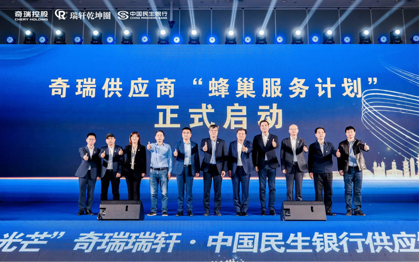 为深入贯彻落实党的二十大报告中提出的“着力提升产业链供应链韧性和安全水平”,助力制造业高质量发展,4月12日,中国民生银行联合奇瑞集团供应链平台瑞轩科技在安徽芜湖举办“以链为基·绽放光芒”奇瑞瑞轩·中国民生银行供应链金融客商大会。奇瑞控股集团有限公司执行副总经理刘杨,民生银行副行长石杰出席会议。瑞轩科技总经理张日驹及30余家奇瑞汽车链上客户代表现场参会,通过直播平台观看人数超过3万人。