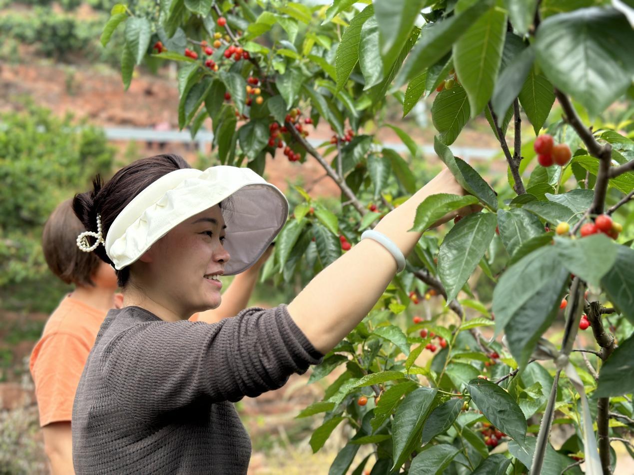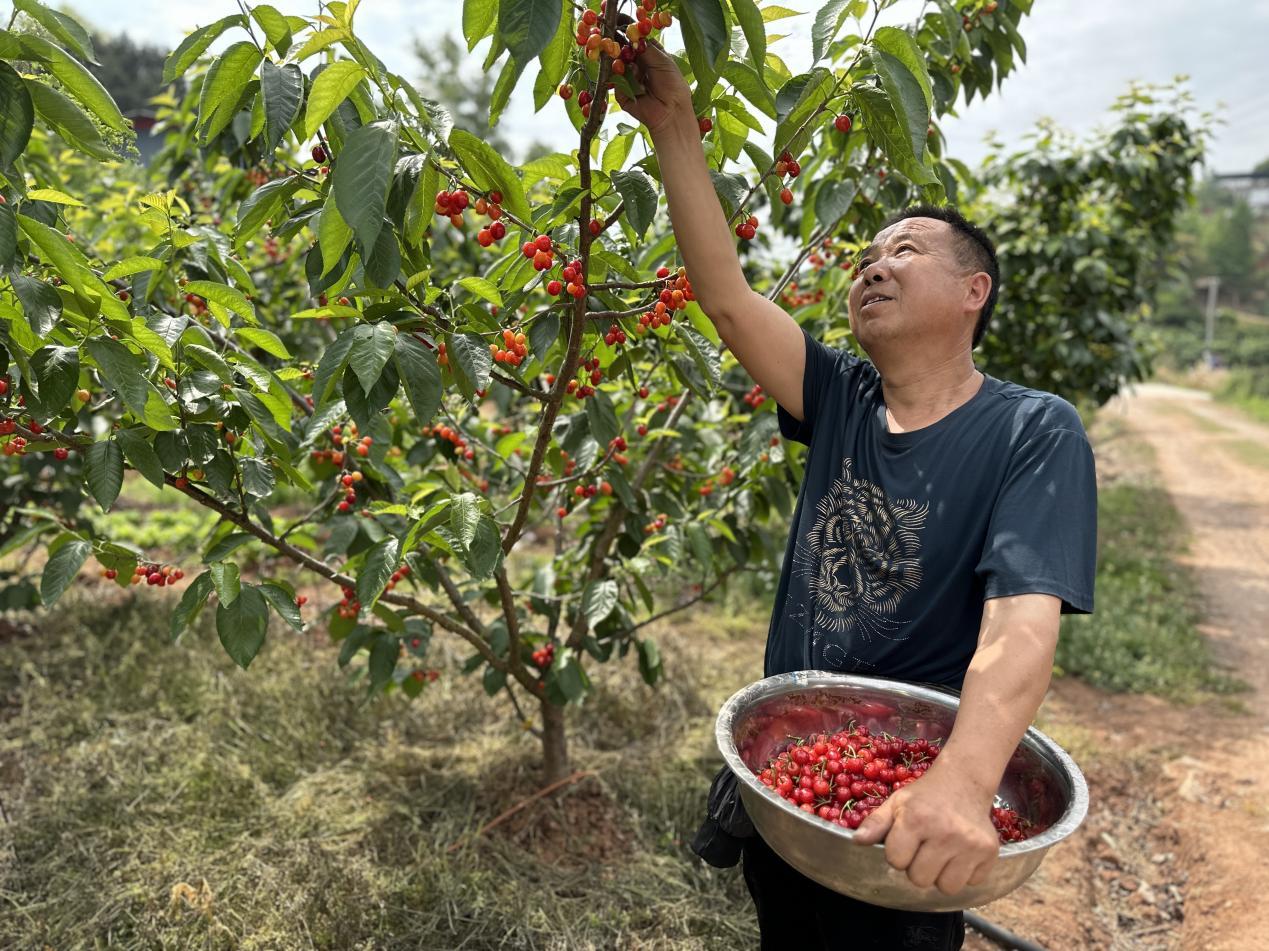 “张书记,我们村有几户种植户樱桃‘讨不赢(四川方言,来不及摘)’了,你们来帮帮忙要得不?”