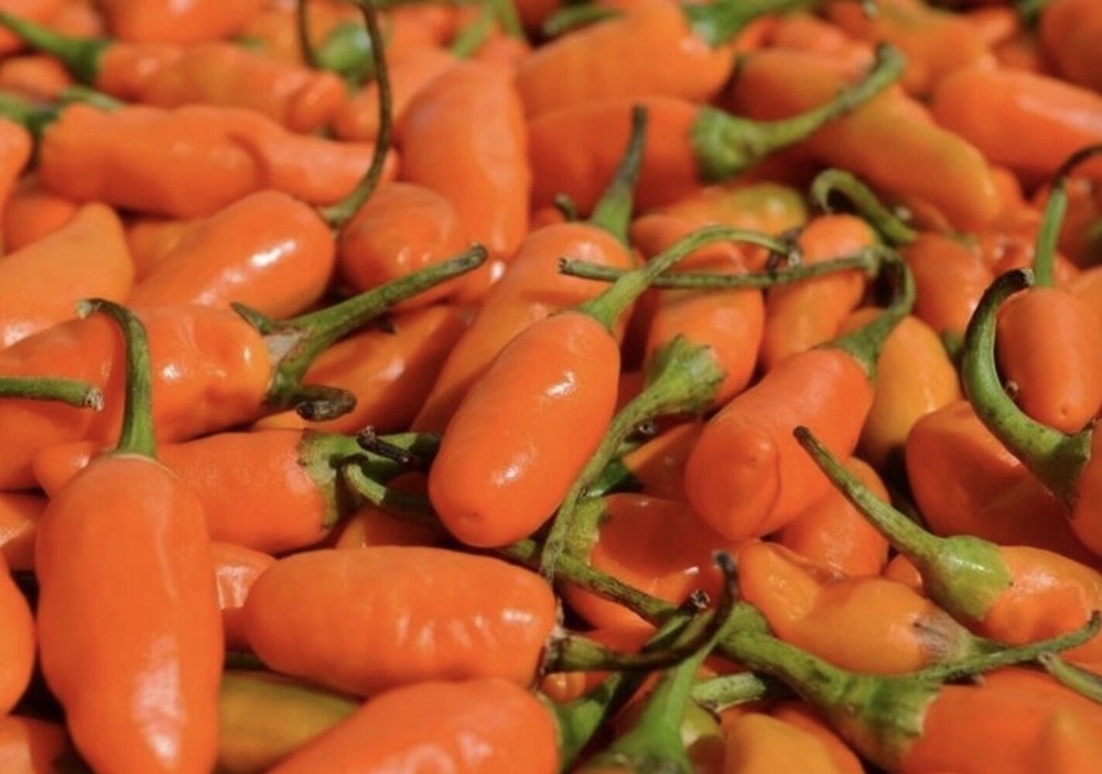 中午时间,得荣县城内,有不少当地村民集中摆摊售卖自家产的农副产品。逛了一圈,我们发现不少村民都在卖一种辣椒:绿色、黄色外皮,个头很小,但辣味十足。当地人管它叫做“树椒”。