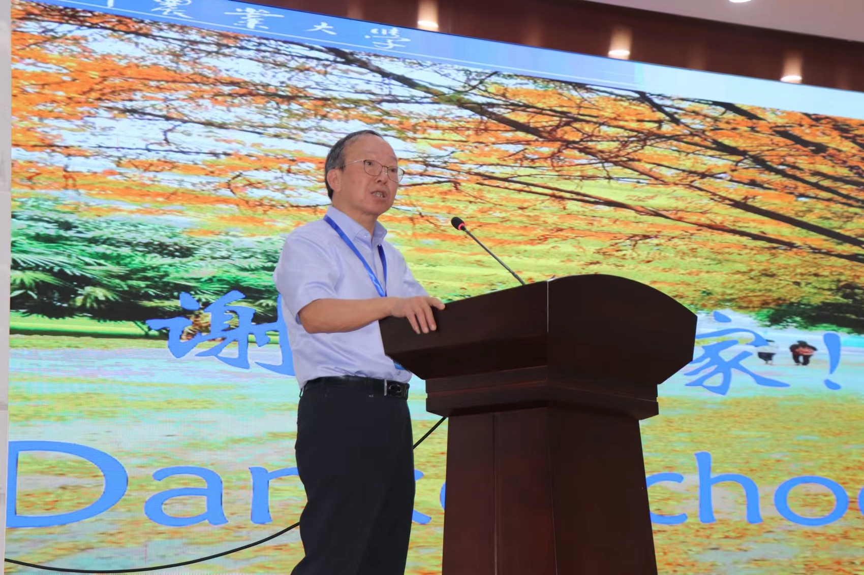四川农业大学原党委书记邓良基作报告。