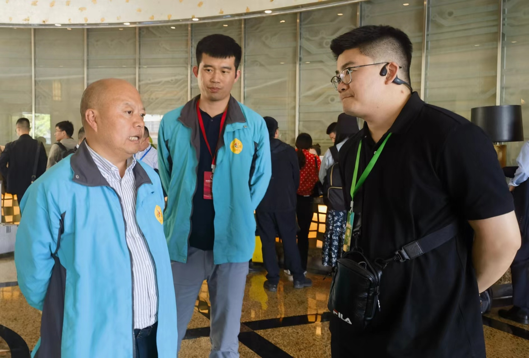 大会间隙,来自泸州的有机肥企业负责人向台沃集团董事长孙松国(左)请教。