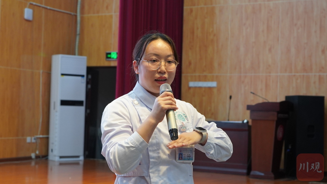 随后的辨识护嗓中药环节,成都中医药大学附属医院药剂科主管中药师,执业中药师罗小莉,通过新媒体课件、现场发放展示中药、互动问答等形式,向师生们详细讲解了黄芪、枸杞子、桔梗、麦冬等十余种护嗓利咽的中药,并介绍了玄麦利咽合剂等医院耳鼻喉科常用院内制剂。