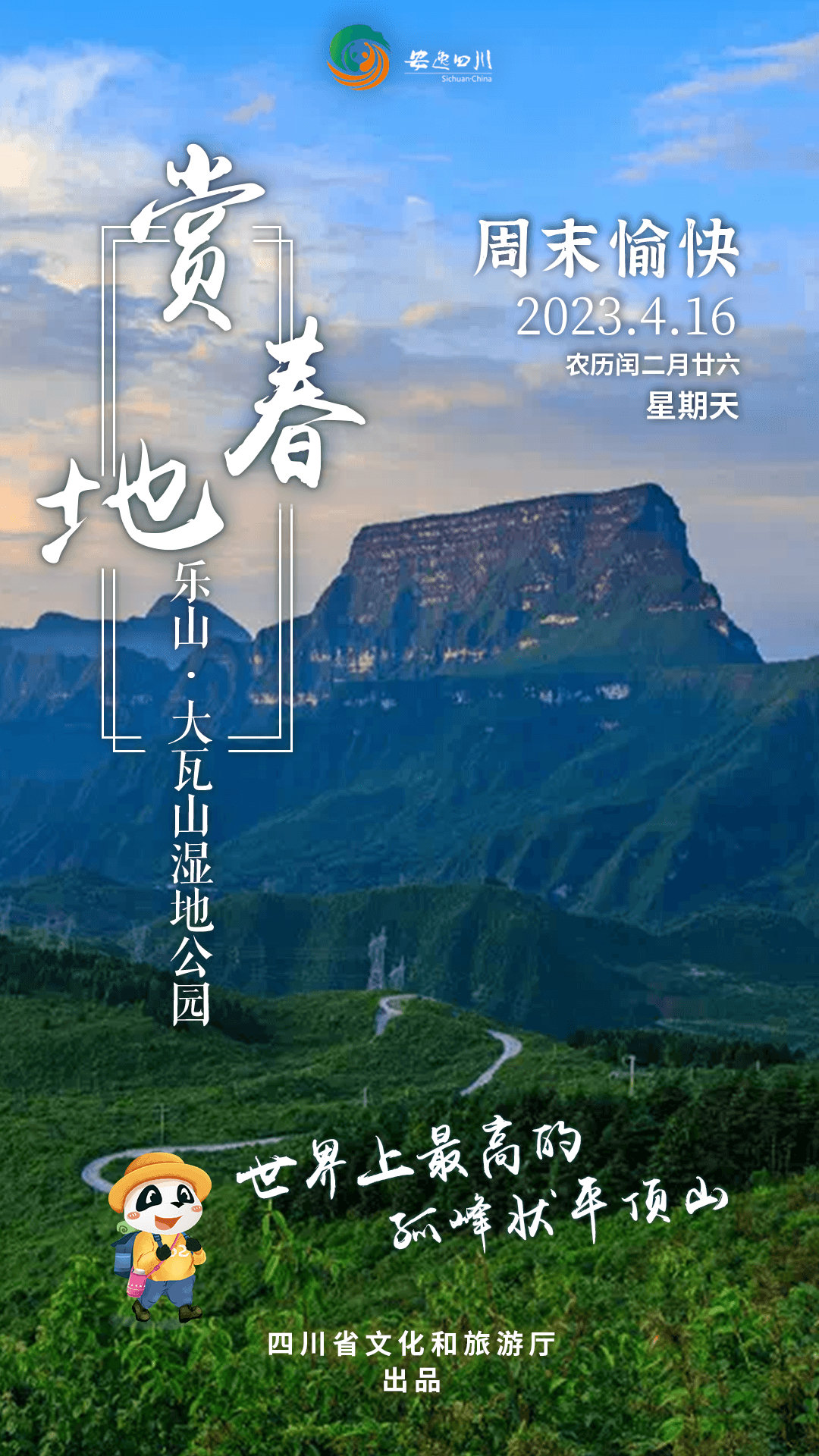 4月16日,星期日,周末愉快。今天安逸四川日历海报带大家走进乐山金口河区大瓦山湿地公园,一览叠瓦覆于群山之巅的震撼。