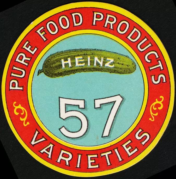 1896年,H·J·亨氏在一次搭乘纽约的火车时无意看到一则广告在播放21种风格的鞋子,他认为这个想法很有新意。尽管Heinz 当时已经生产了60多种产品,但他认为57是一个幸运数字。因此,H·J·亨氏将60多种产品归为57类,并将57类作为他之后所有广告的标语。于是57这个神奇的数字成为亨氏的代名词并沿用。