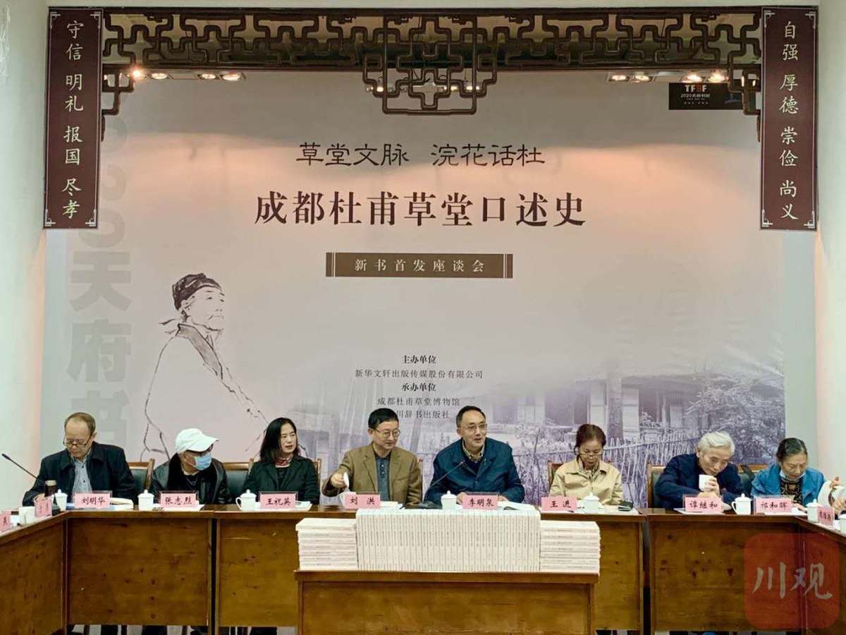 10月18日,作为天府书展系列活动,《草堂文脉 浣花话杜:成都杜甫草堂口述史》(以下简称《口述史》)新书首发座谈会在杜甫草堂举行,成都杜甫草堂博物馆馆长刘洪、四川省文联副主席李明泉、四川省历史学会会长谭继和、西南大学文学与教授刘明华等众多专家学者济济一堂,共话草堂文脉,诗圣春秋。