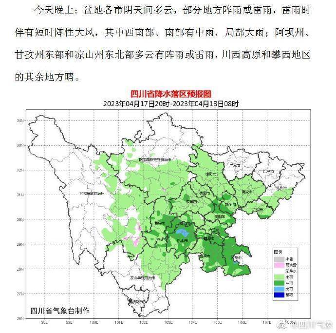 19日,天气转阴,19日晚上开始到22日,四川大部还有一次降雨降温天气过程。据四川省气象台最新的预报,20-22日,盆地日平均气温累计下降7-9℃,部分地方将超过10℃,大部地方伴有雷阵雨,雨量普遍中到大雨,东北部局部有暴雨。