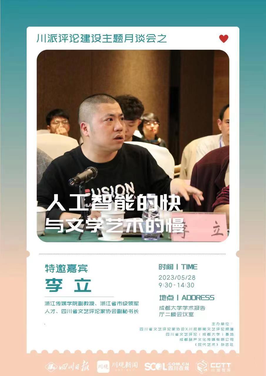 李立:浙江传媒学院副教授,浙江省市级文化艺术领军人才,四川省文艺评论家协会副秘书长
