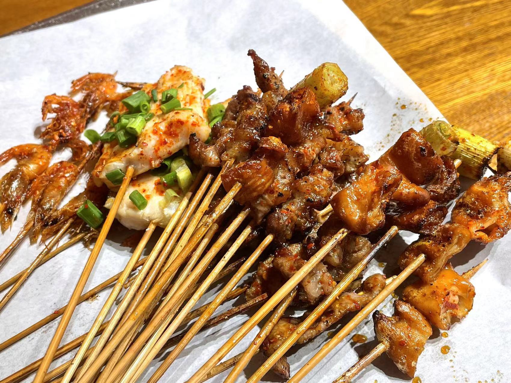 在西昌夜间比较普遍的就是串串烧烤,几乎大街小巷都有它的身影,品种繁多,麻辣鲜香。如果觉得鱼虾肉类太腻,用竹签穿上土豆片、莲藕、嫩南瓜等各种蔬菜也是一种不错的选择。