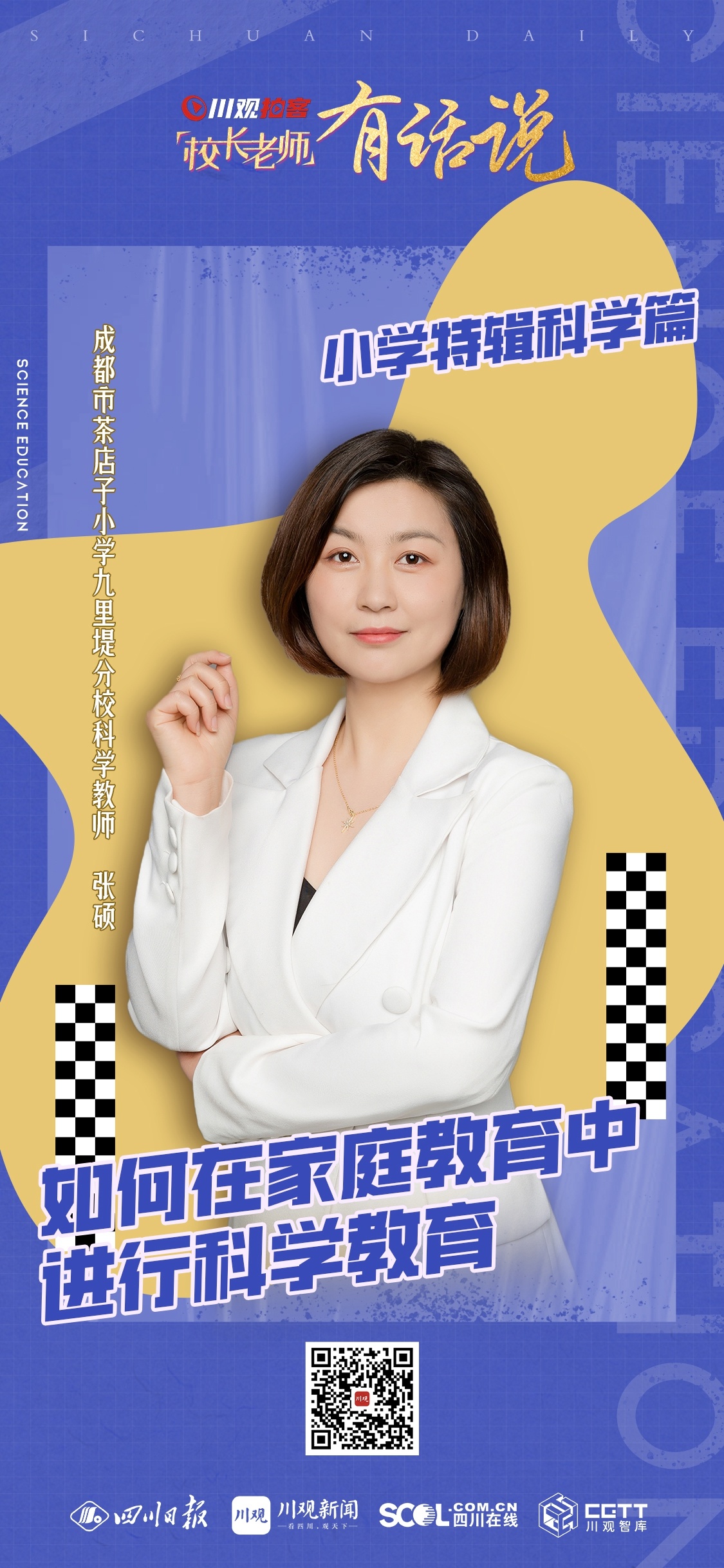 家庭教育是小学生进行科学学习和探究的重要资源,对小学生科学素养的全面提高有着很重要的意义。今天,来自成都市茶店子小学九里堤分校的科学教师张硕,就跟大家聊一聊如何在家庭教育中对孩子进行科学教育的话题。