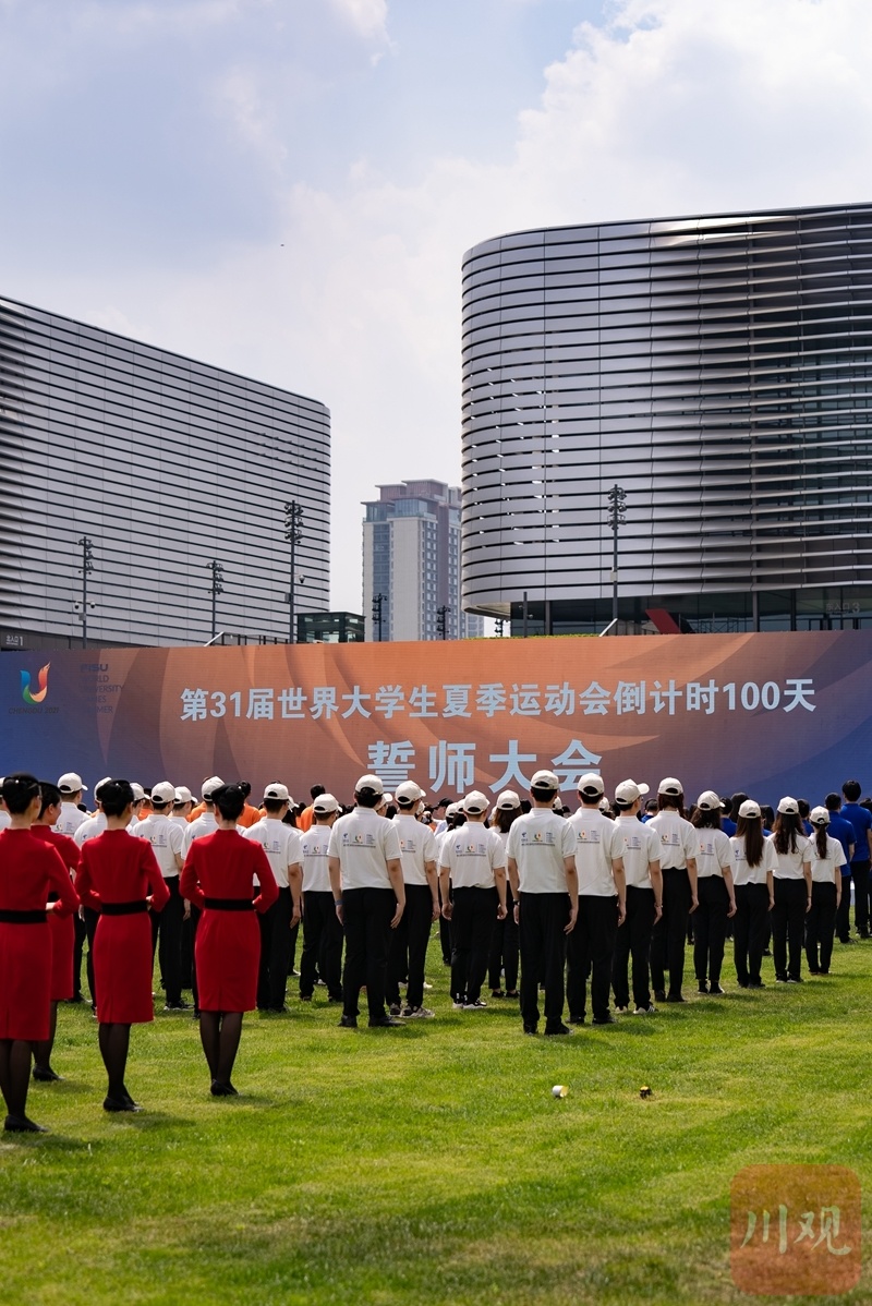 “我宣誓:我们将牢记嘱托、勇担使命、全力以赴、决战决胜,高质量筹备成都大运会,向全世界展示中国特色、时代气息、青春风采!团结奋斗,奉献大运!”4月19日,“成都成就梦想”第31届世界大学生夏季运动会倒计时100天誓师大会在成都东安湖体育公园中央广场举行。
