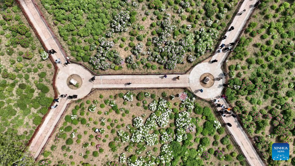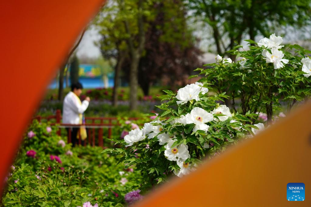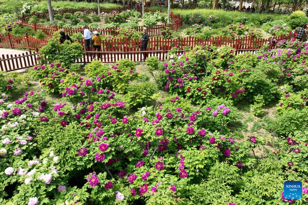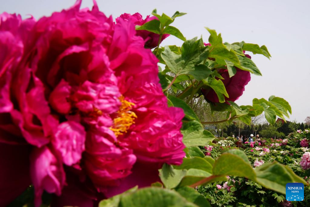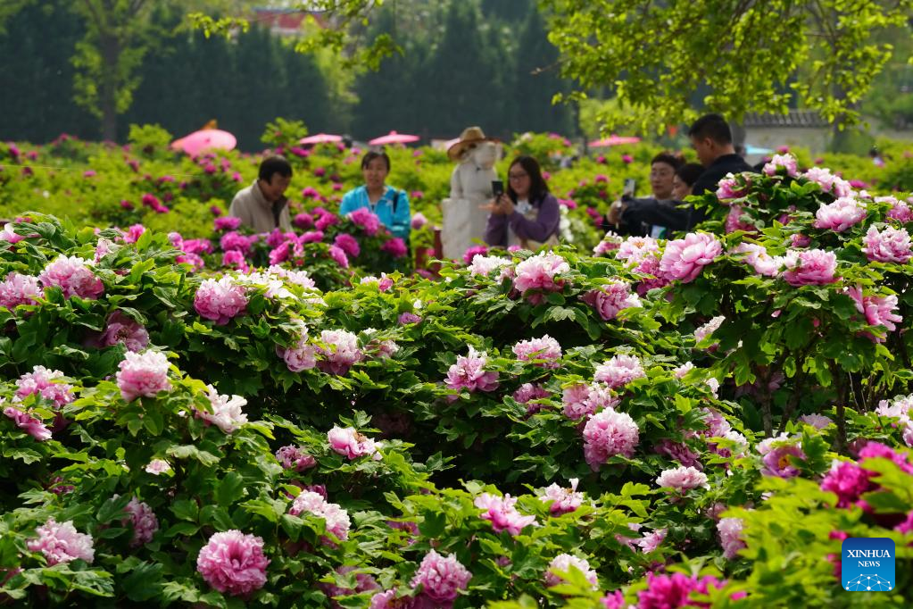 Tourists visit a peony garden during a local peony culture festival in Baixiang County, north China's Hebei Province, April 18, 2023. In recent years, the county has promoted the integrated development of peony industry with local tourism, health care, and cultural innovation to boost rural revitalization. (Xinhua/Mu Yu)