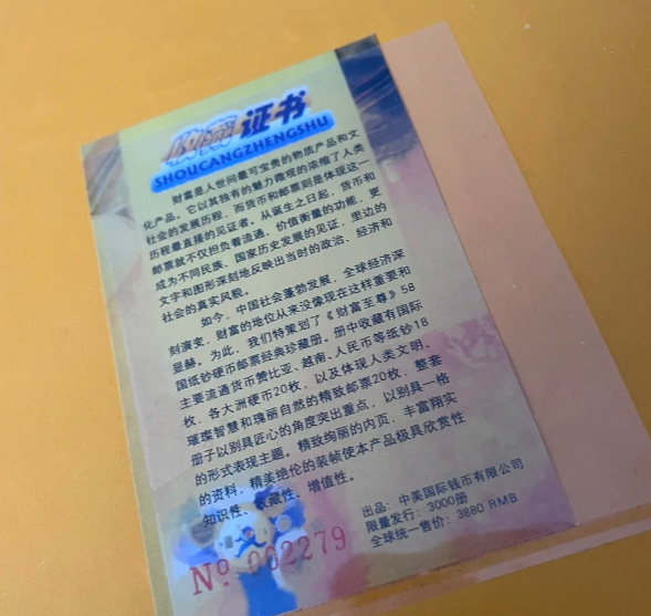 以一套珍藏版58国纸钞硬币收藏册为例,“收藏证书”上的信息显示,该收藏品全国限量发行3000册,全球统一价格为3880元人民币,出品方为“中美国际钱币有限公司”。然而,记者通过多个公开渠道查询,发现均没有该公司的任何信息,很可能是一家子虚乌有的机构。而名称相近的“中国国际钱币有限公司”,经查询是在境外注册,且已“宣告解散”。