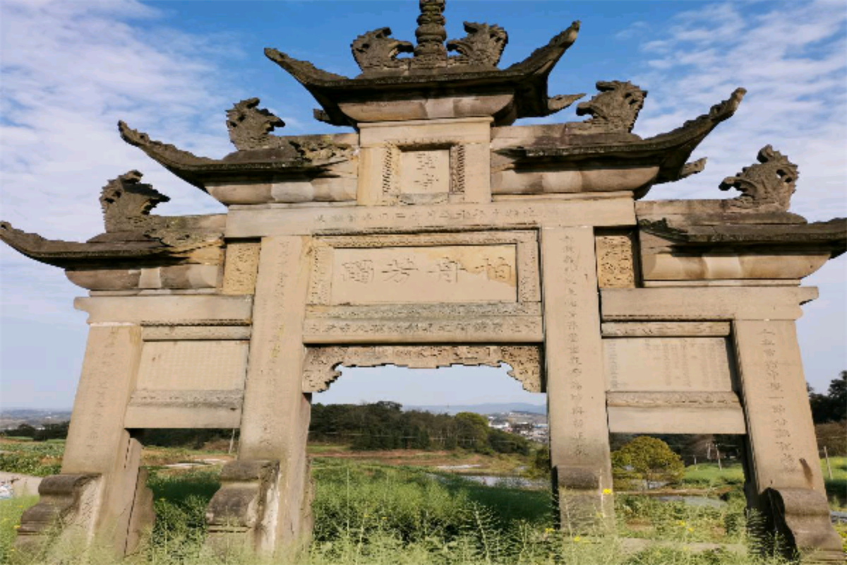 位于富顺县童寺镇的墨香村有悠久历史,现存有萧家老宅、石海螺石坊等古建筑。萧家老宅建于清道光年间,是川西南富商童寺人萧永升大儿子所建。石坊建于清光绪十年(1884年),石坊通身雕刻龙凤、花草等图案,四立柱镌刻楹联。雕刻图案精美,文字饱满端庄,具有较高文物价值。