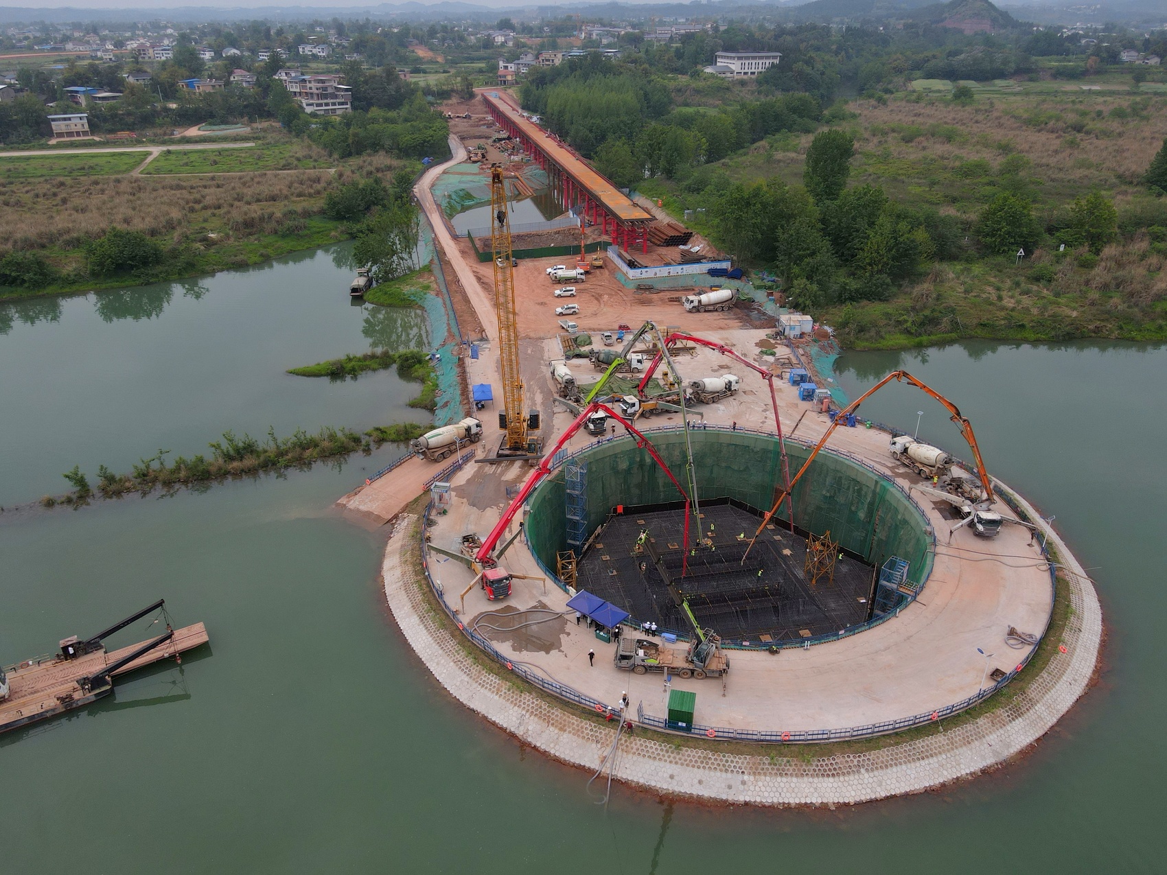 成达万高铁嘉陵江特大桥9号主墩施工现场。