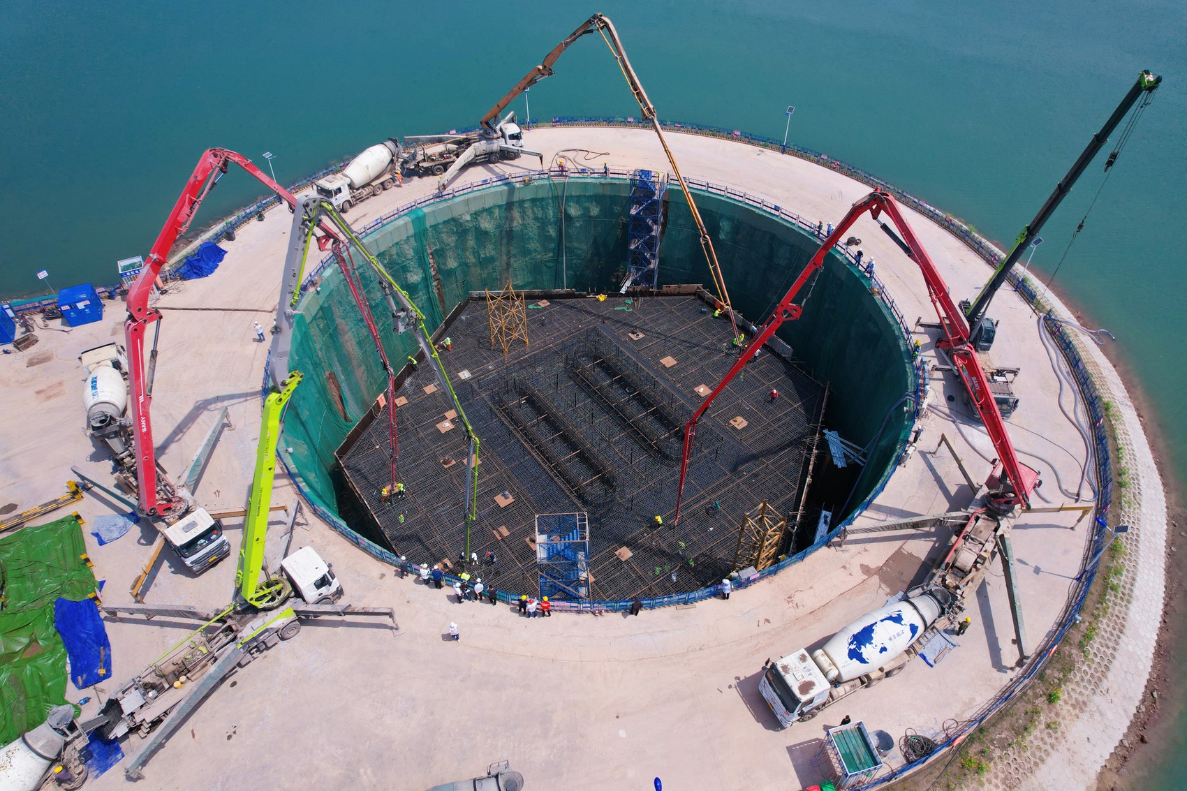 成达万高铁嘉陵江特大桥9号主墩承台浇筑完成。