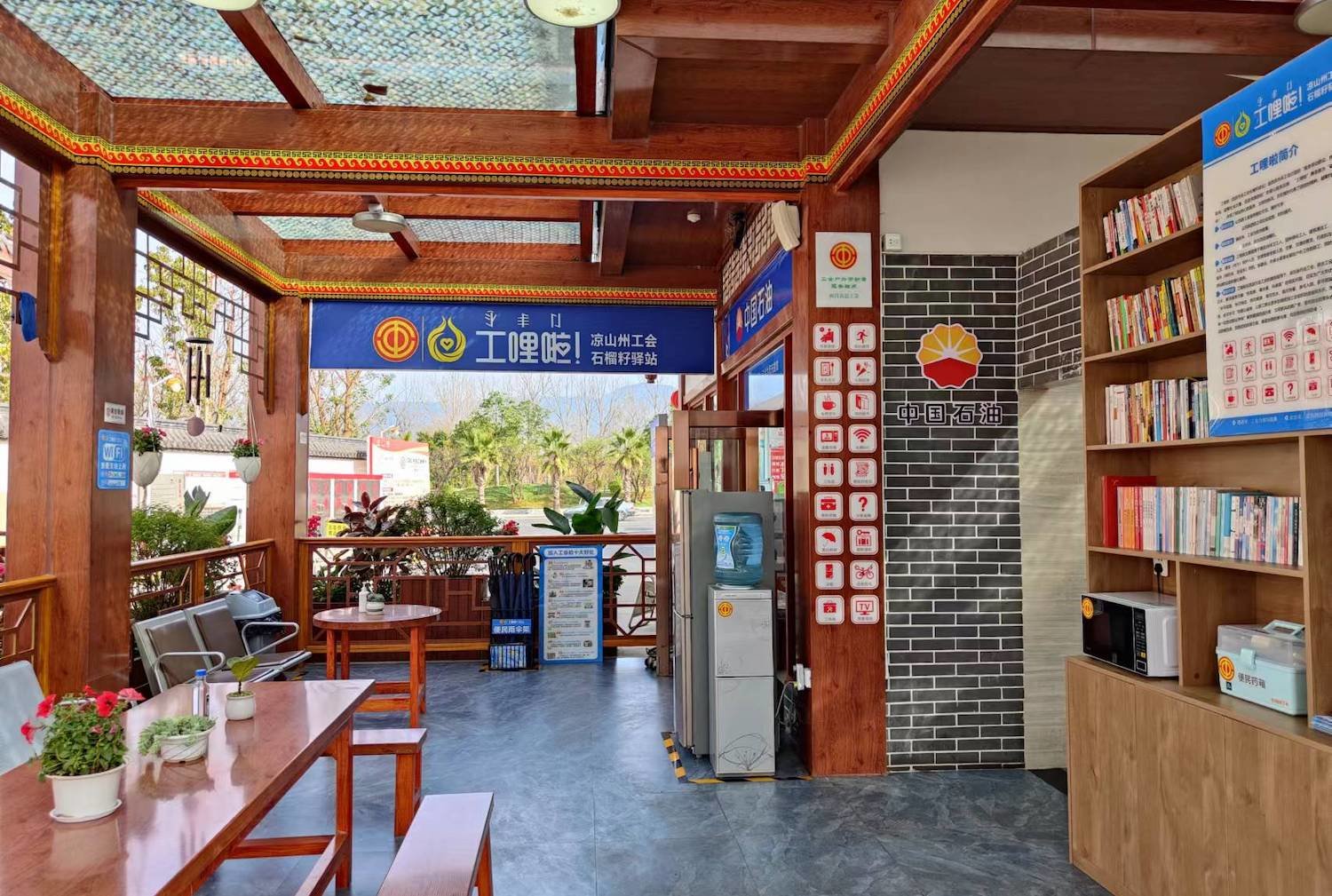 开在加油站里的户外劳动者驿站,“工哩啦”采用了凉山州总工会与中石油凉山公司合作共建模式,打破了由总工会投资、建设、维护的传统模式,投资额度大幅减少,建设周期大大缩短,网点数量也随之增加。“作为共建站点,我们充分发挥主观能动性,既为户外劳动者提供服务,又宣传了我们中石油的企业文化,让更多的户外劳动者走进来。”王竹说。