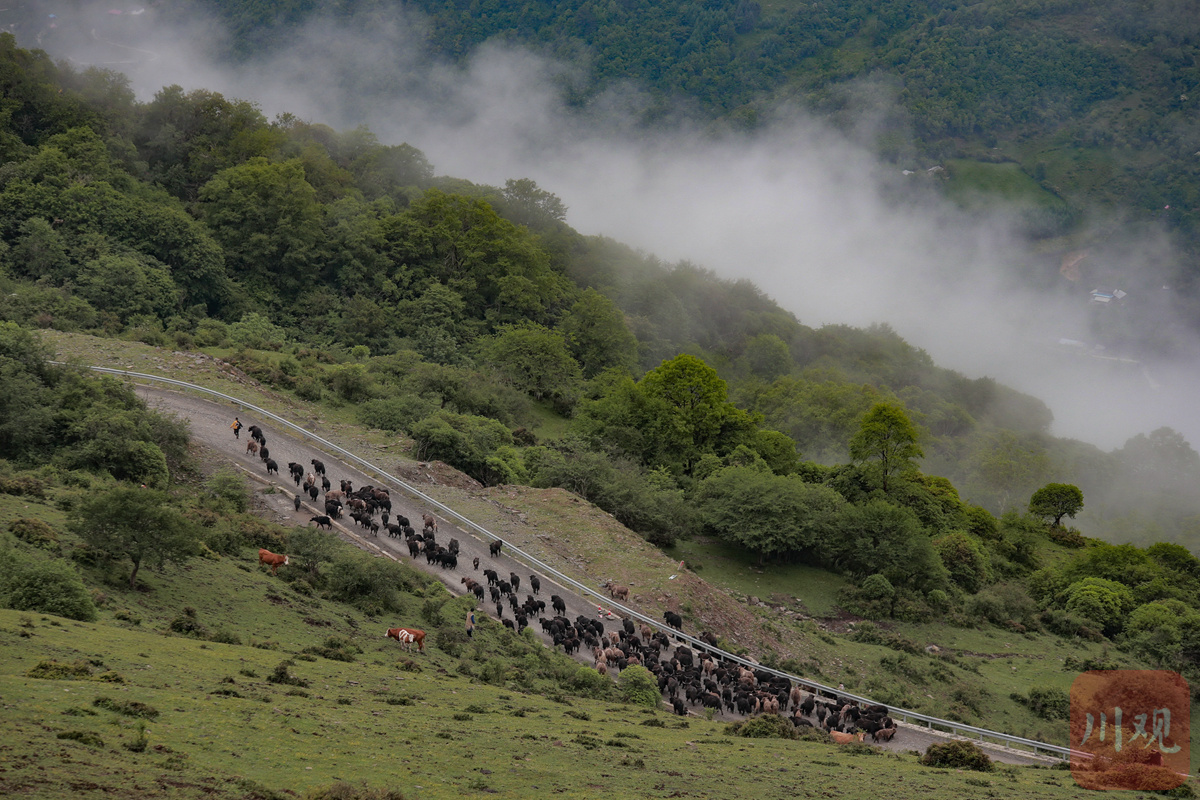 “只要有山有草的地方,就有我们的牛羊”。王代华说,夹金山村是典型的半农半牧区,以畜牧业和养殖业为主要产业,“在海拔2000米到4000米的云海牧场,牛羊喝的就是江水,顺着水流,它们自己就能找到上山的路。”