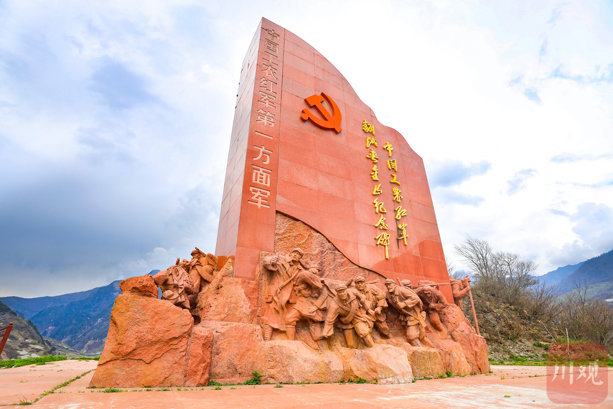 行走在硗碛湖畔,红军长征翻越夹金山纪念碑高高矗立,青山绿水间,这座深红色碑石格外显眼,不少游客停下脚步“打卡”留念。这里不仅有纪念碑,还有誓师坪、红军井及毛泽东、朱德长征旧居等遗迹遗址。