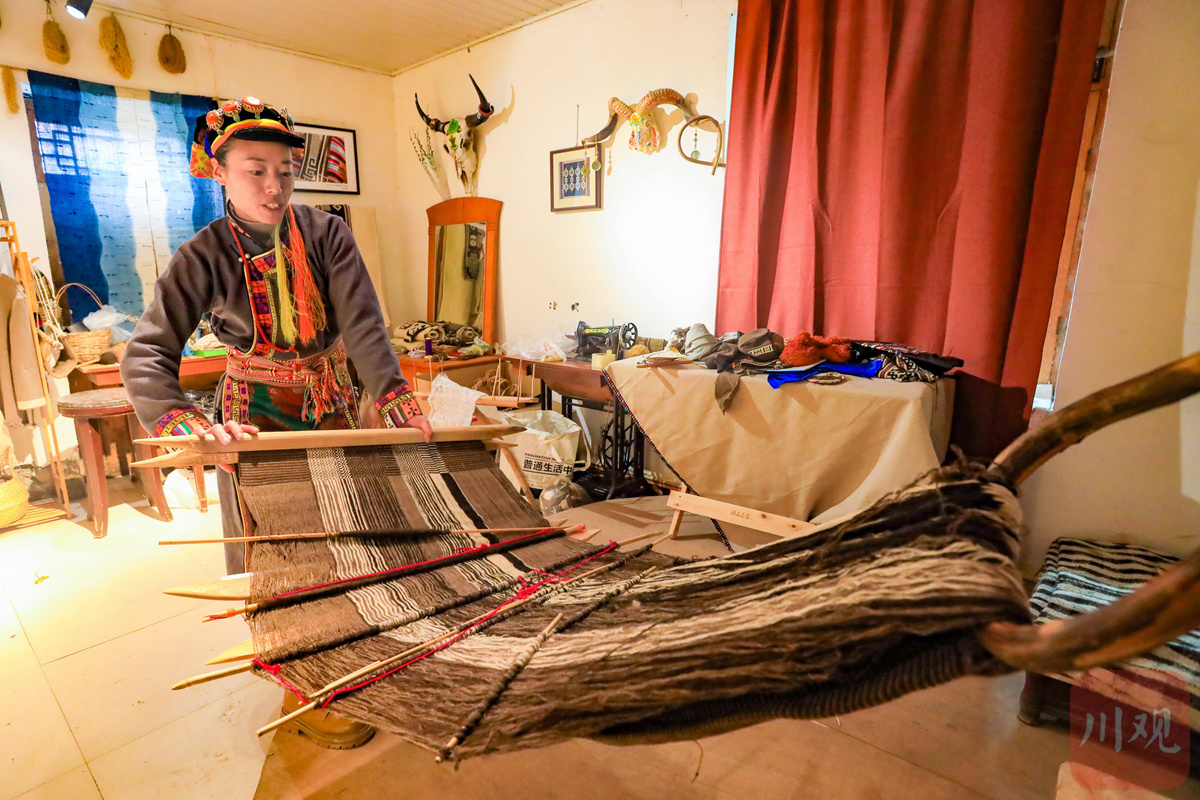 这个月,“硗碛花腰带制作技艺非遗工坊”的牌子,刚在阿泰藏家乐挂上。心灵手巧的能卡曼,是“花腰带编织技艺”的非遗传承人。