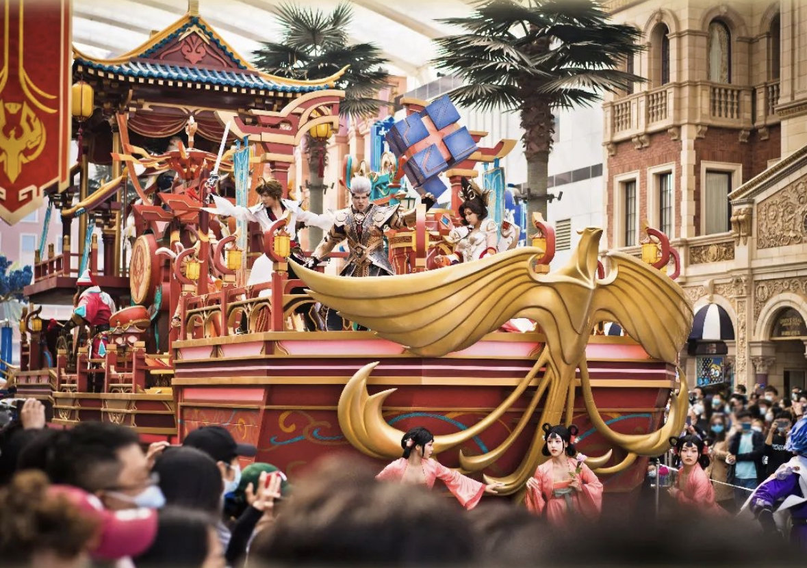 在这场时长30分钟的巡游式移动舞台剧中,演员阵容由11位英雄角色、8名战士、12名舞者和6名旗手组成,为游客们带来一场充满主题公园特色、高度还原、深度沉浸的娱乐体验。