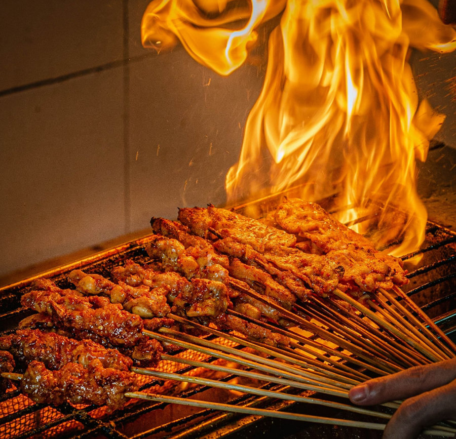 不止于普通烧烤是炭火与食材的艺术,乐山烧烤在对食材的处理和味道把控上还增加了香料的浸透,热油的温润以及卤水的醇香。