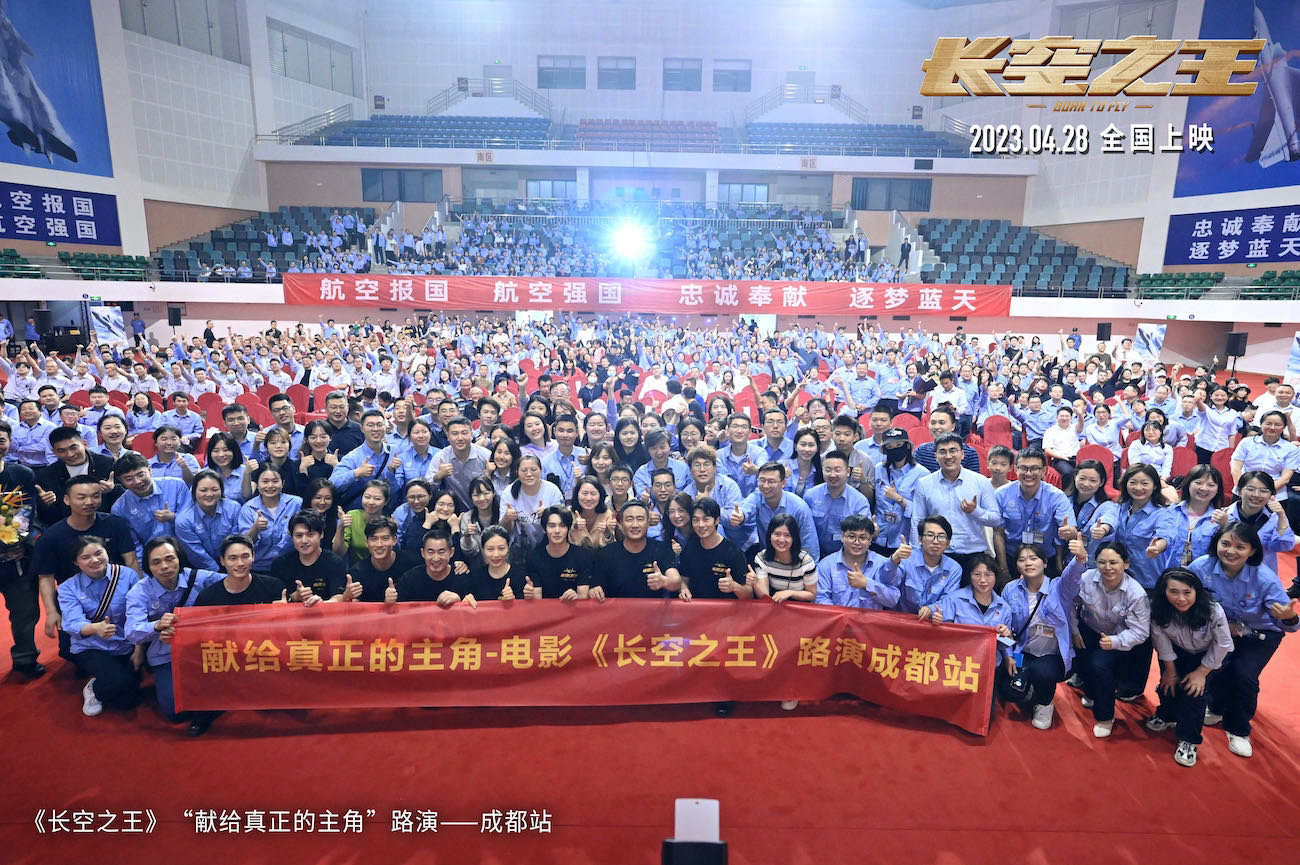 4月20日晚,热血励志大片《长空之王》全国路演来到成都,面向当地航空人和中小学生进行了放映。编剧、导演刘晓世,编剧桂冠,演员胡军、于适、卜钰、翟宇佳、王子宸、芦鑫现身互动。影片对试飞险情的真实还原受到广泛认可,不少观众感受到了惊心动魄的试飞故事和尖端战机带来的震撼。