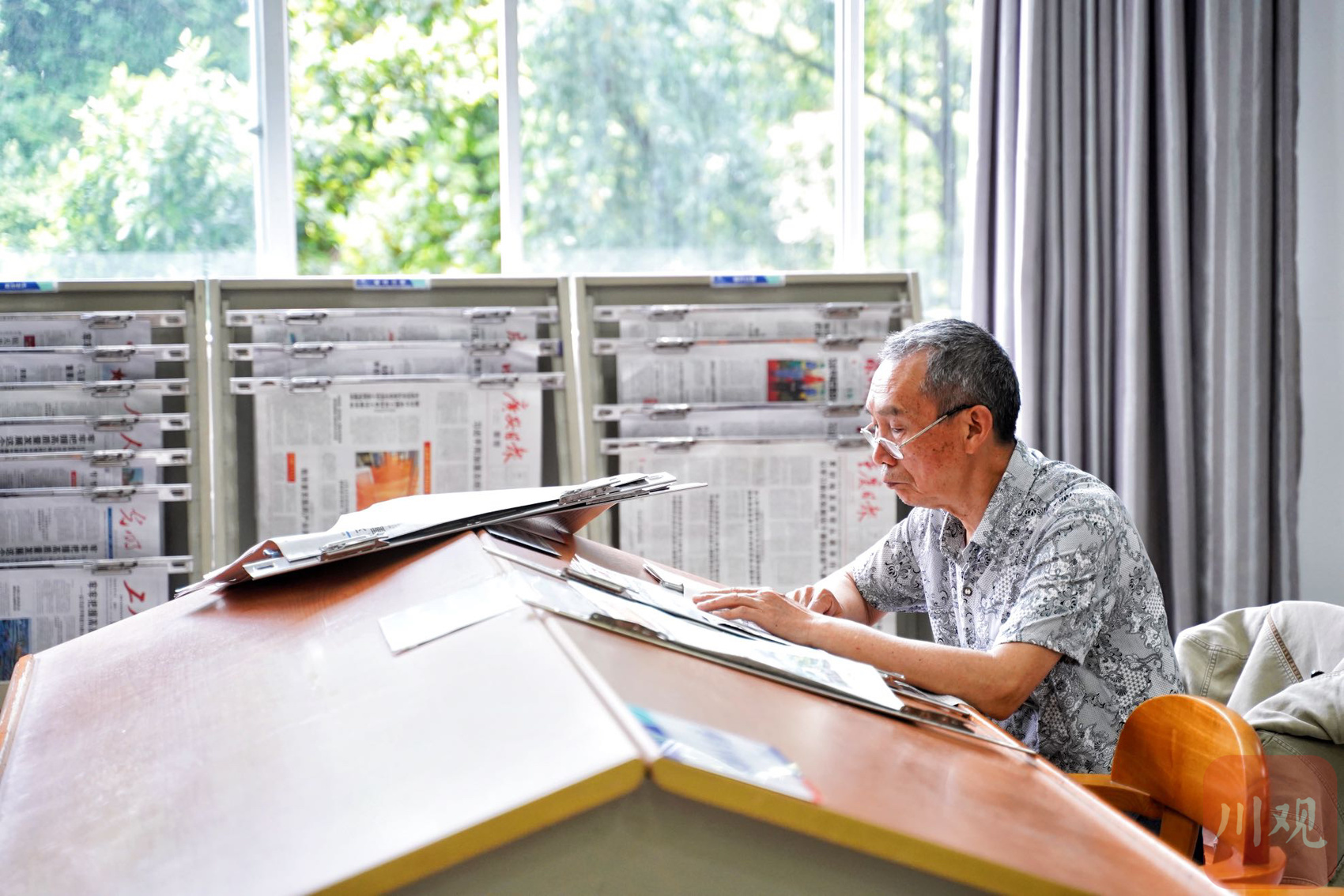 图书馆期刊阅览室内,读者在阅读报刊。 吴迪 摄