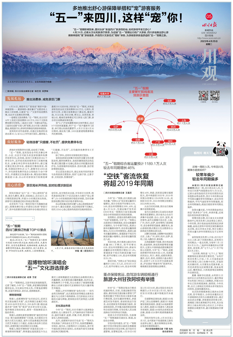 为迎接“五一”假期出行的广大游客,四川多地推出舒心游保障举措和“宠”游客服务,为游客提供安逸舒适的“五一”假期之旅。