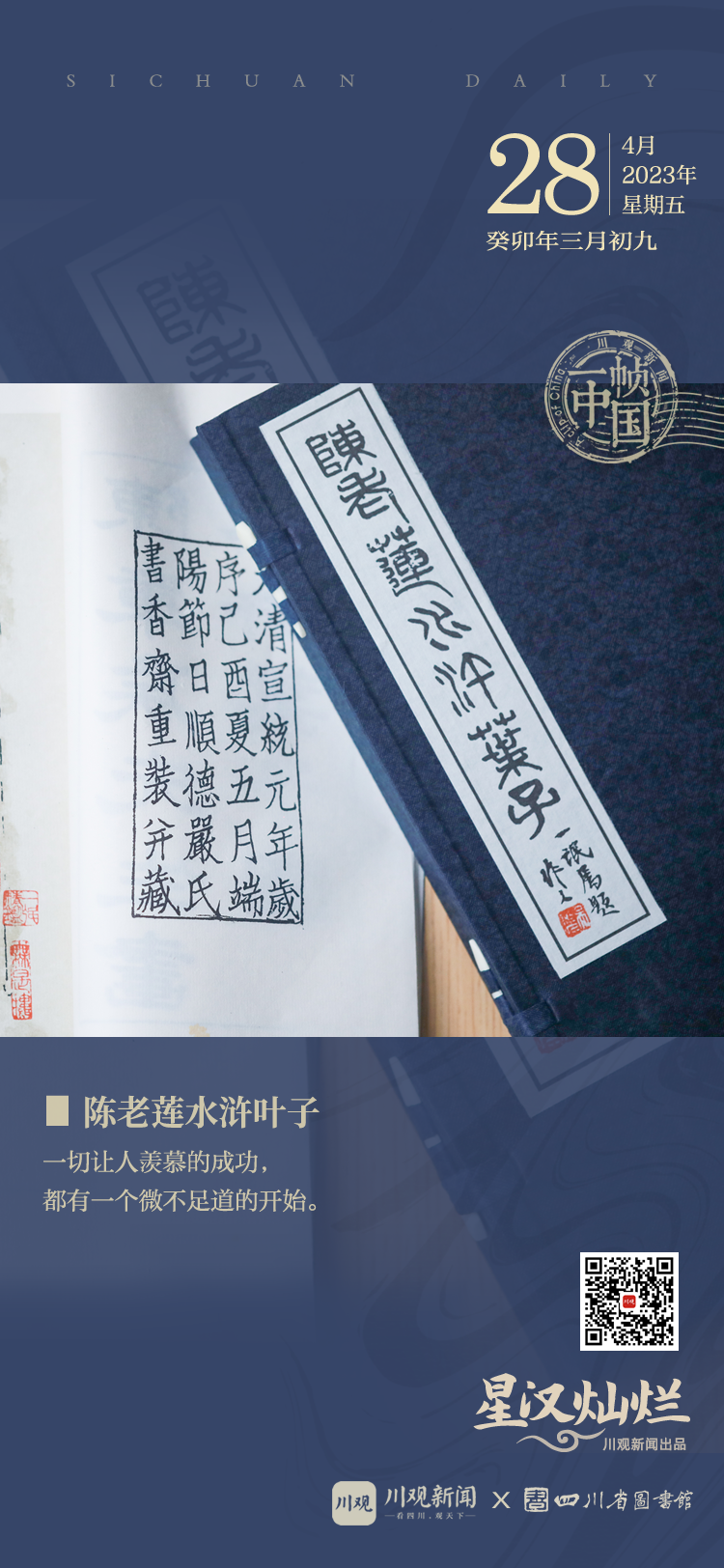 该书为明末画家陈洪绶(字章侯,号老莲)与刻工黄君蒨在艺术创作上完美结合成就的古代版画艺术精品,在中国版画艺术史上具有重要地位。川图藏本为《陈老莲水浒叶子》祖本,传世极罕。