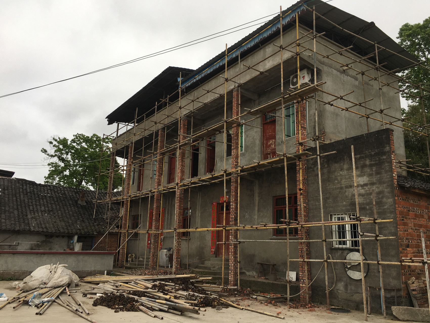 4月25日,隆昌市胡家镇洪家村14组,村民钟健正在施工的房前筹划着如何进一步改造提升房屋。“房顶的彩钢棚会换成树脂瓦,厨房厕所都要改,房屋里里外外都需要装修一下。”