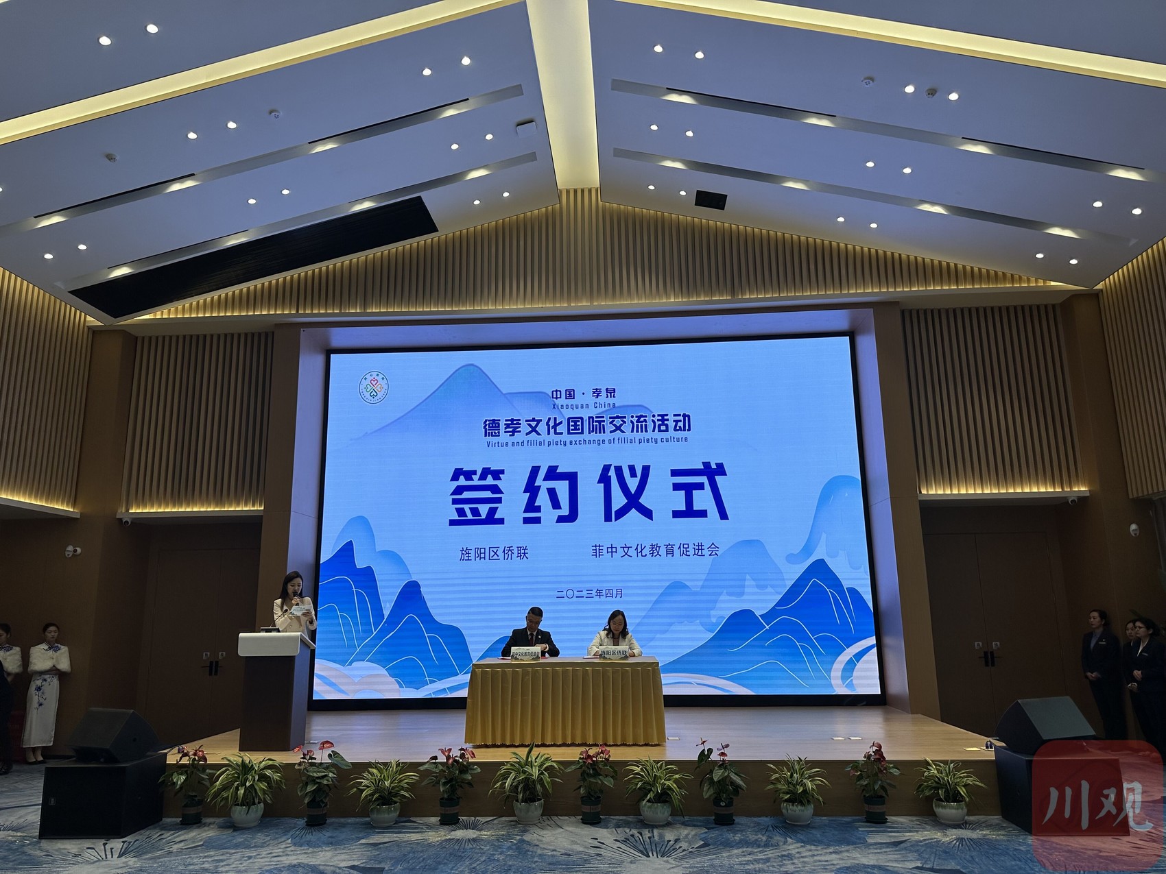 4月25日上午,菲中文化教育促进会代表团一行走进德阳市旌阳区孝泉镇,开展德孝文化国际交流活动。活动现场,旌阳区归国华侨联合会与菲中文化教育促进会签署交流合作协议。