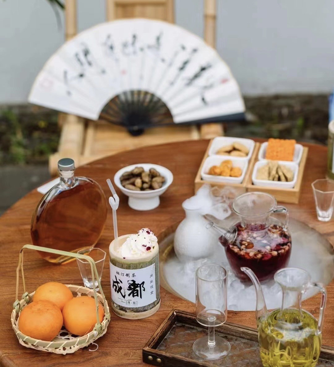 “我们是成都第一批上新围炉冰茶的门店,自4月15日以来,过来体验的顾客络绎不绝。”位于三圣乡的白鹭烟汀自然美学餐厅相关负责人说。