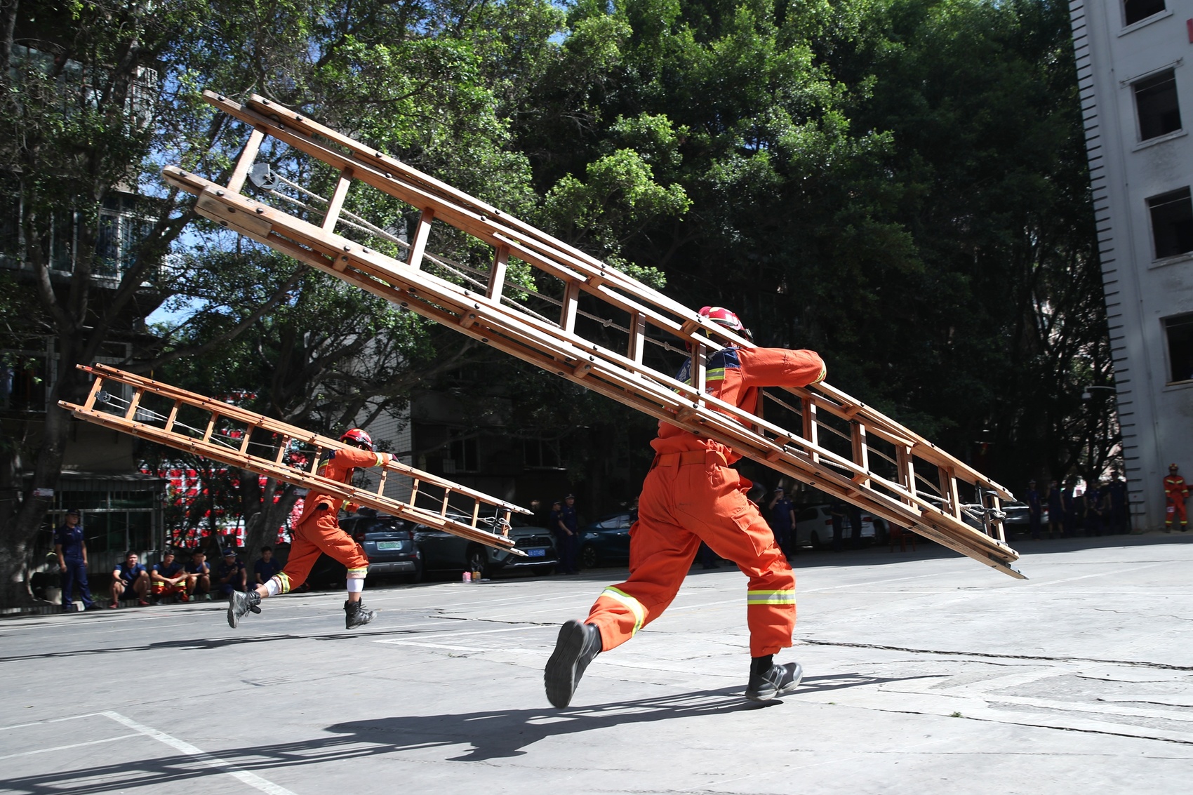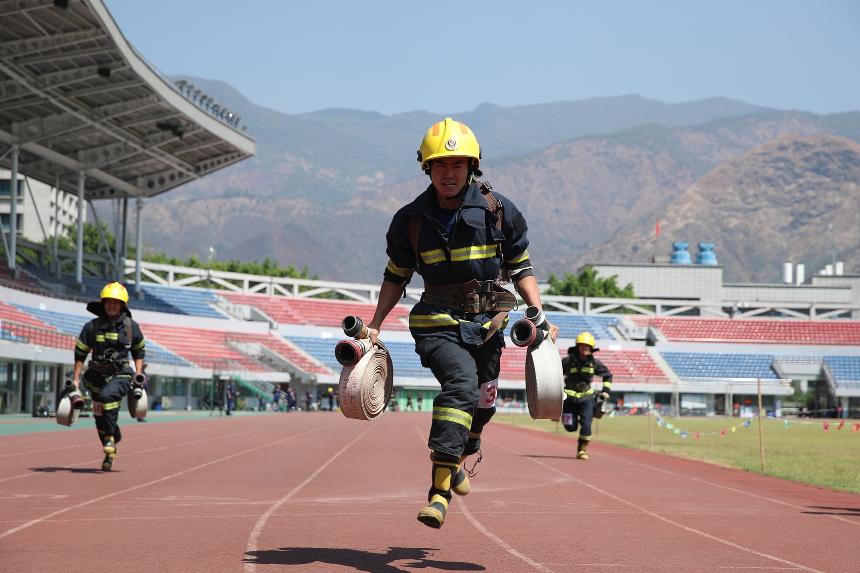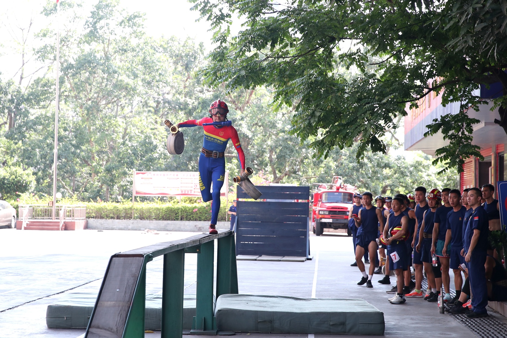 消防障碍、负重跑、肩梯登楼……比速度、比力量、比作风,本次竞赛设有3000米跑、百米负重、单人二节拉梯操、一人三盘水带连接操等8个科目及业务理论测试,涵盖基础体能、基本技能、班组体能等训练内容,赛事丰富,贴合实战,既有秒数、分数的“硬功夫”比拼,又有技能、战术的“软实力”较量。